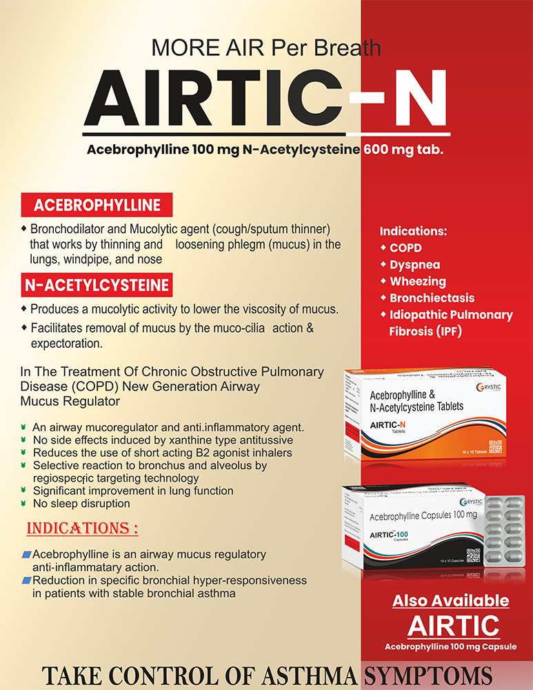 Acebrophylline 100mg + N Acetyl Cysteine 600mg (Anti-asthmatic with Mucolytic)