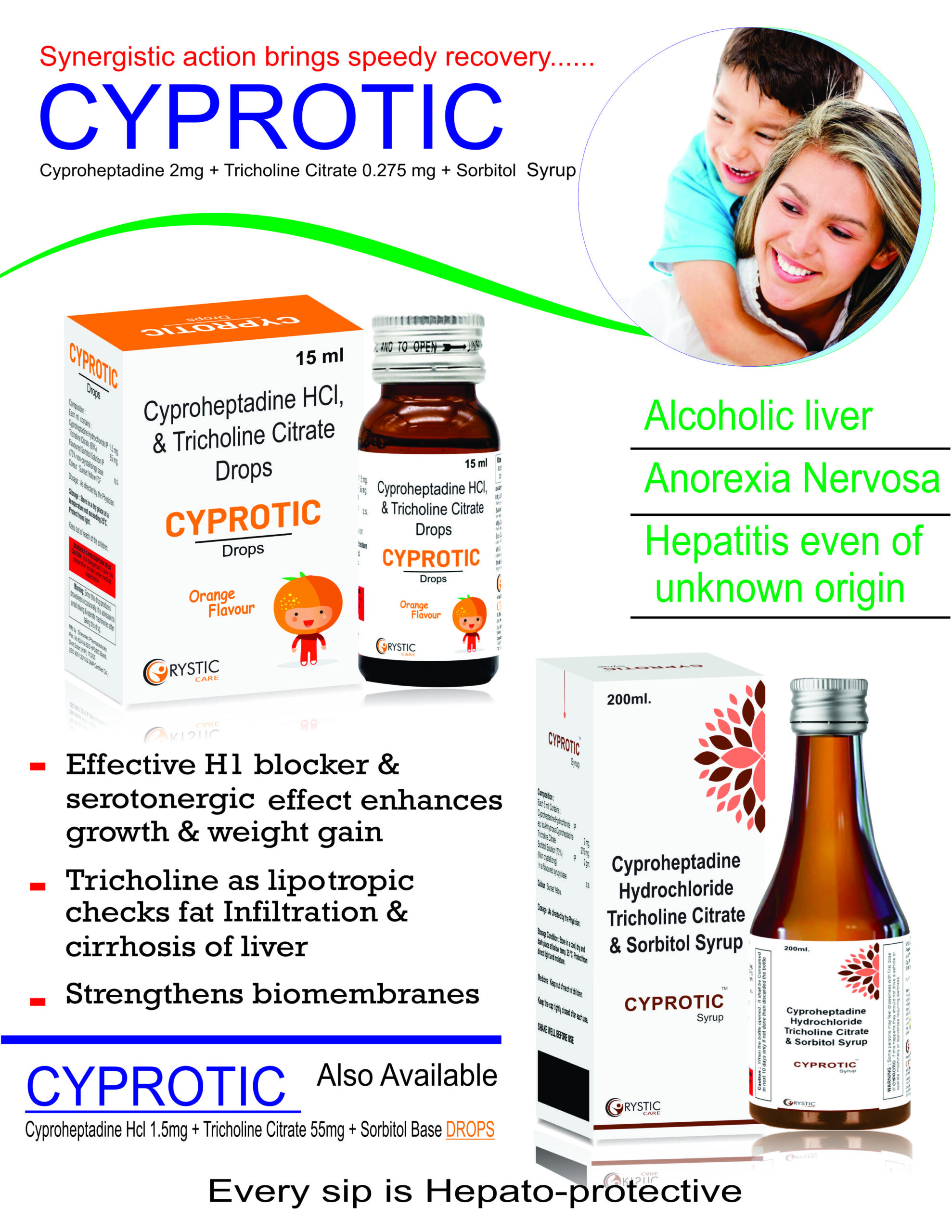 Cyproheptadine 2mg, Tricholine Citrate 0.275mg, Sorbital Syrup